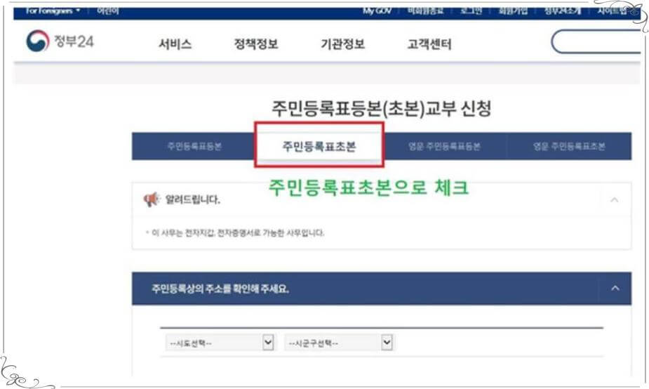2. 초본[과거 주소변경 전체이력 및 병역사항 포함] *정부 24