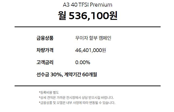 1. 아우디 A3 월 사용 비용은?