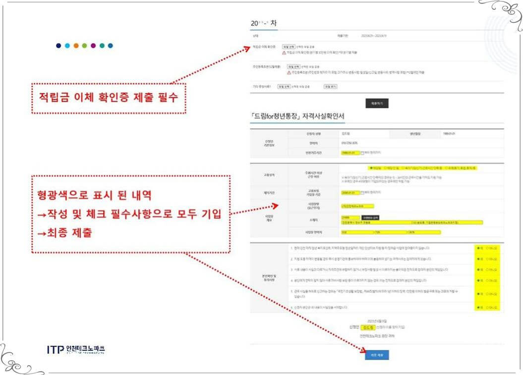 드림 For 청년통장 자격검증서류 제출 유의사항 및 예시자료