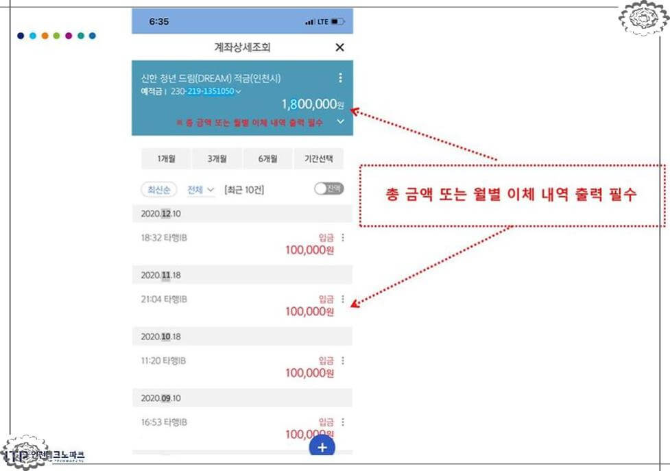7. 적립금이체확인증 (1~3월 입금내역, 총금액, 계좌번호 확인 가능하도록 제출)